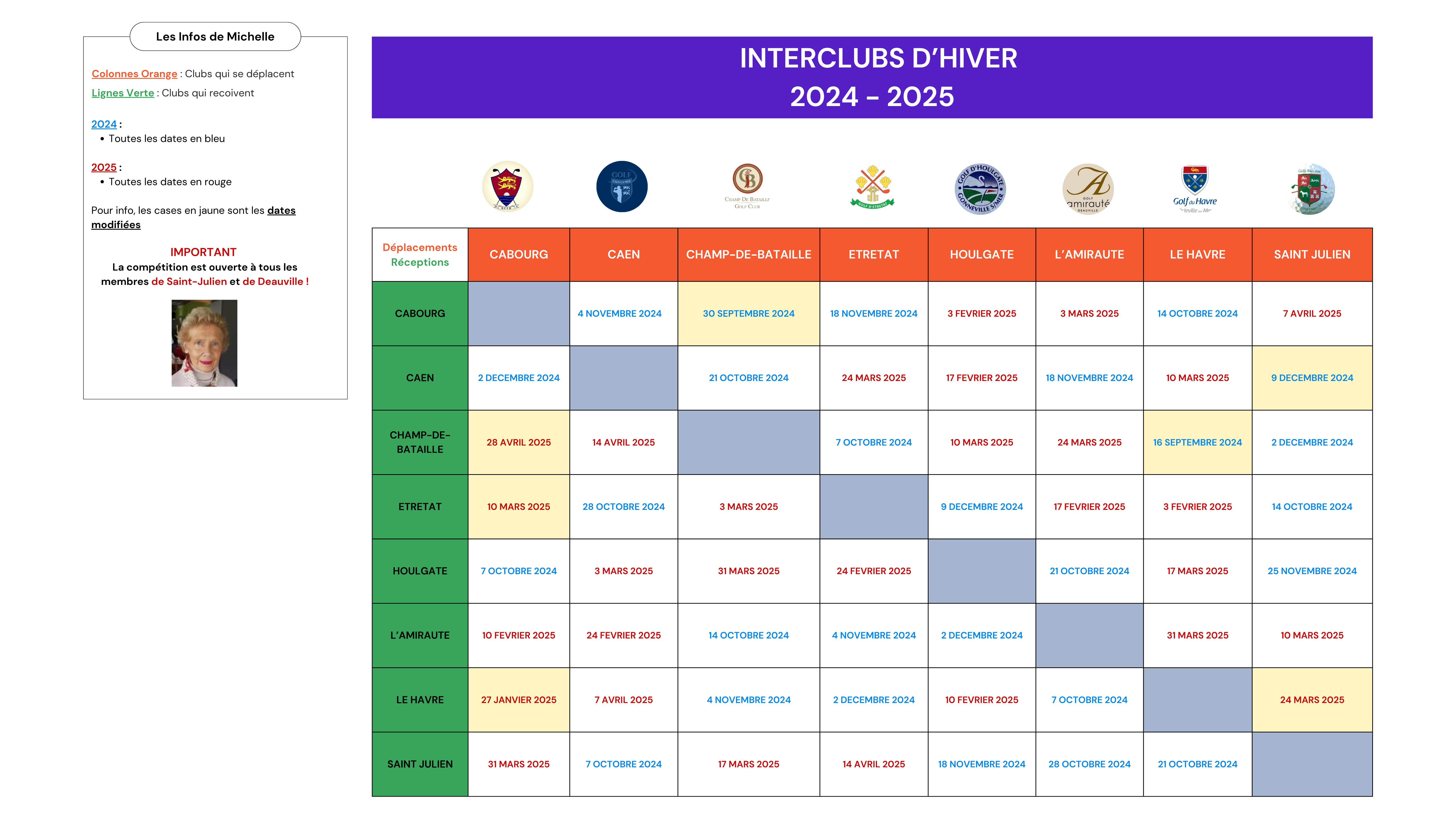 Compétition ouverte à tous les membres de St-Julien et de Deauville. Les rencontres InterClubs d’hiver recommencent.