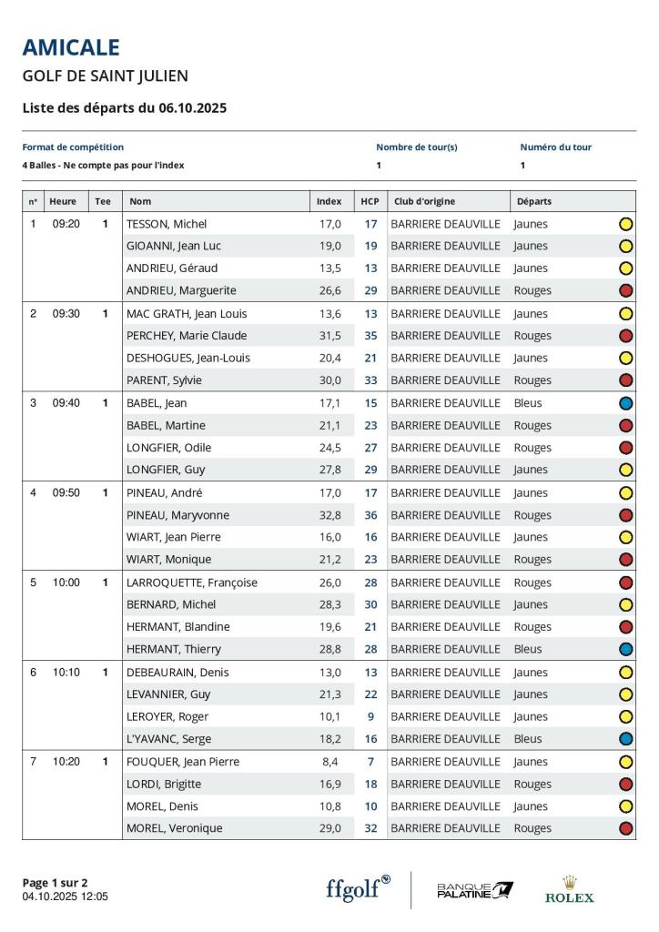 Liste des Départs et Résultats